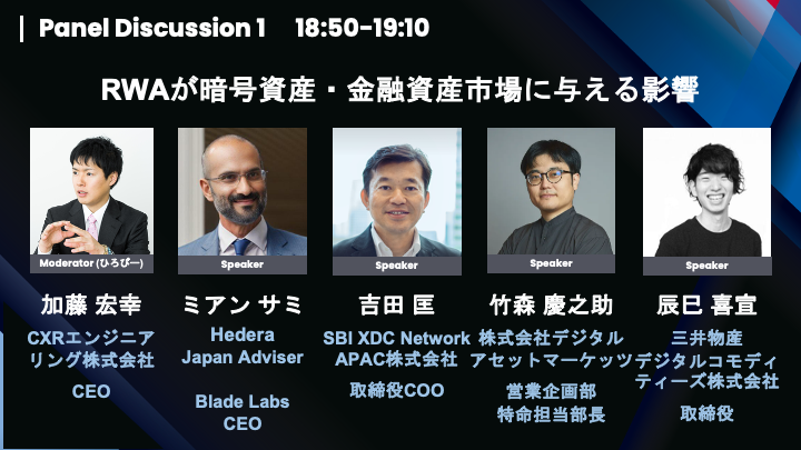 2部構成となるパネルディスカッションの最初のパートでは、リアルワールドアセット(以下「RWA」)が暗号資産市場や金融資産市場に与える影響をそれぞれの立場から議論していただきました。