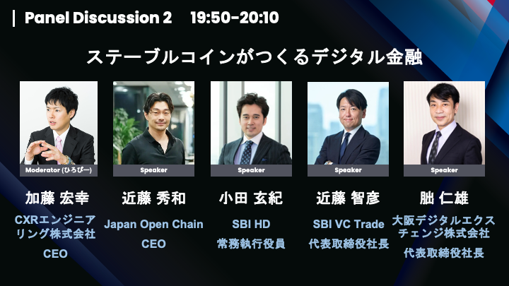 パネルディスカッションの2部では、日本におけるステーブルコインの現状、新たなビジネスやサービスの可能性、そして普及に伴う課題とその解決策について、パネリストたちが意見を交わしました。