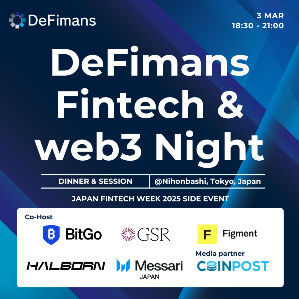 DeFimans、3/3(月)にBitGo・GSR・Figment・Halborn・Messari JPとJapan Fintech weekサイドイベントを開催!著名ゲストも登壇予定!