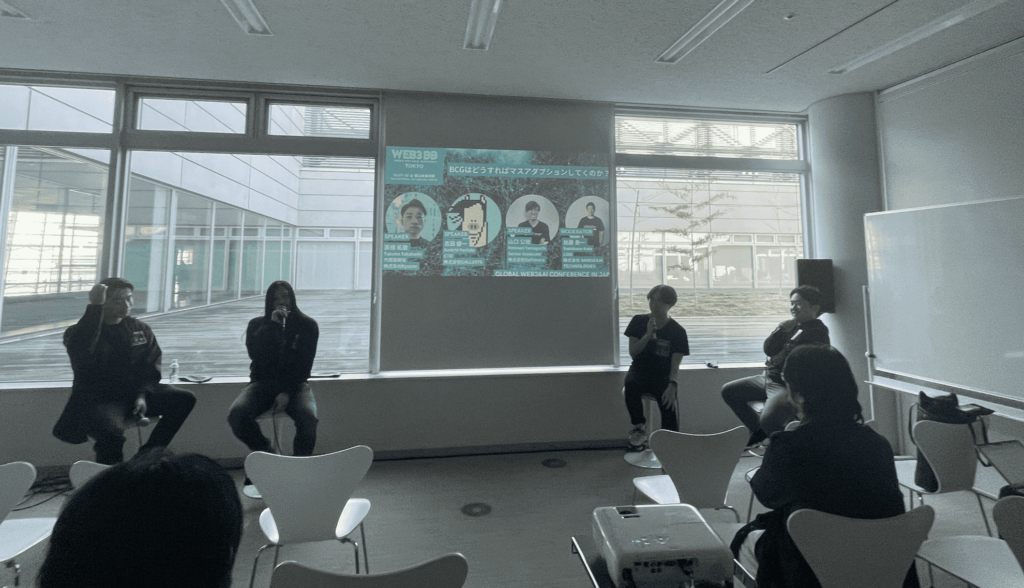 BCGのマスアダプション(=新規web2ユーザーを呼び込む)にはウォレット作成・初期課金をはじめとする参加ハードルの簡易化、そして従来型のSNSサービスの利用や他IPとの連携が必要ということがセッションのポイントでした。