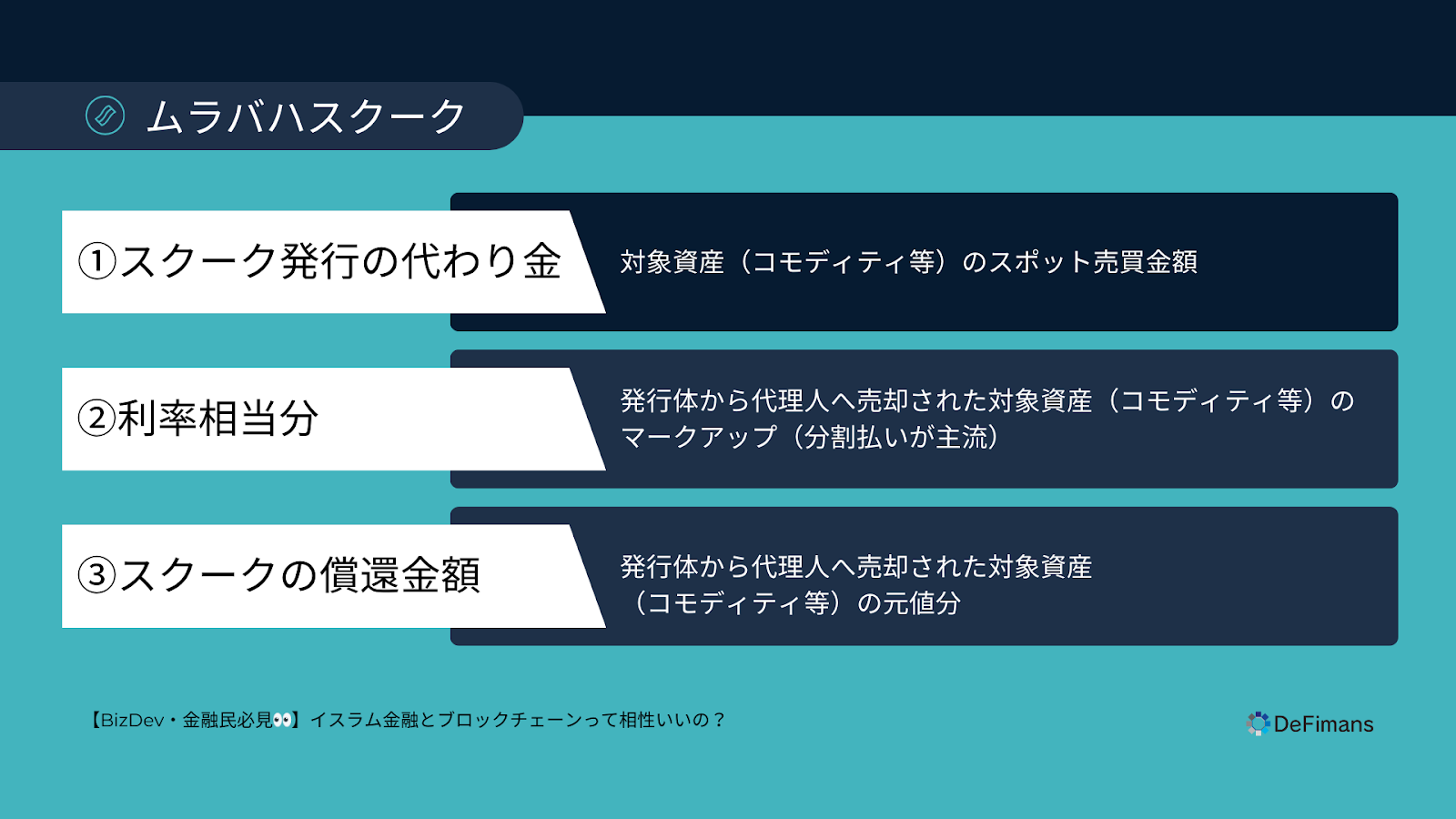 - 利率相当分:発行体から代理人へ売却された対象資産(コモディティ等)のマークアップ(分割払いが主流)